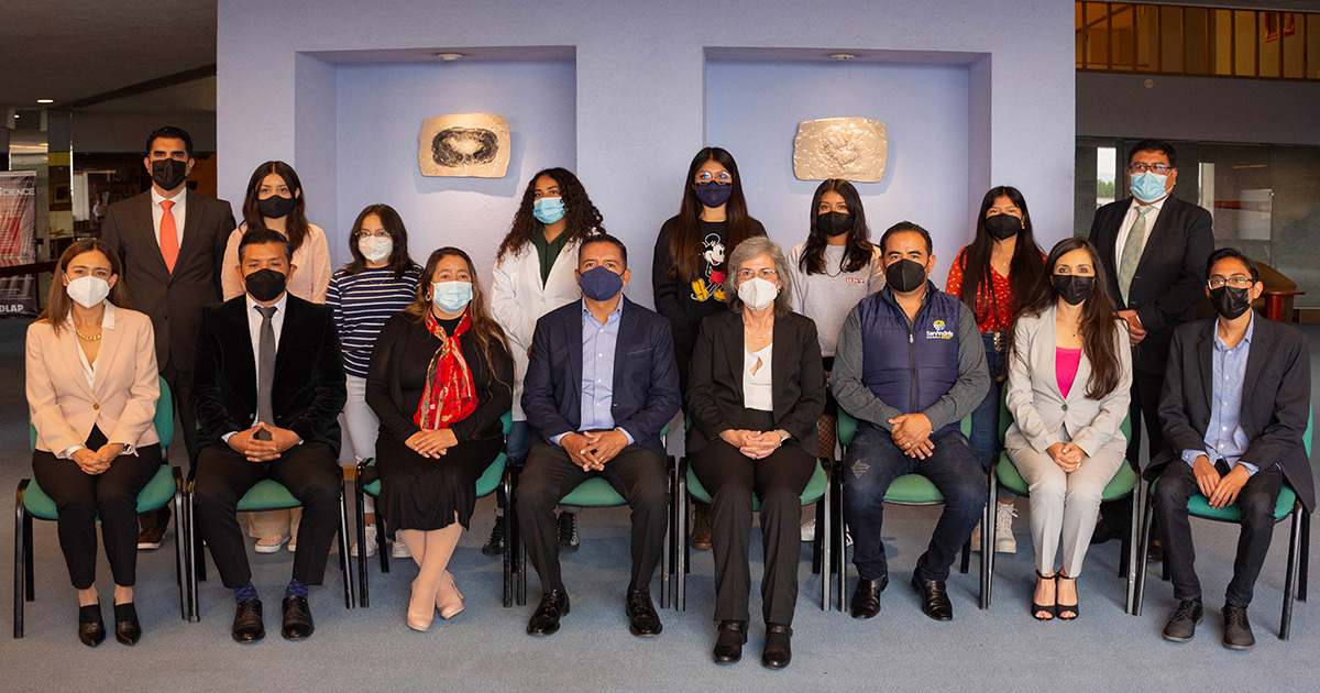 La Doctora Cecilia Anaya Berríos, rectora interina de la Universidad de las Américas Puebla (UDLAP) y el Músico Edmundo Tlatehui, presidente municipal de San Andrés Cholula, se reunieron con jóvenes oriundos de este municipio que se hicieron acreedores a una de las becas académicas derivadas del convenio signado entre ambas instituciones.
