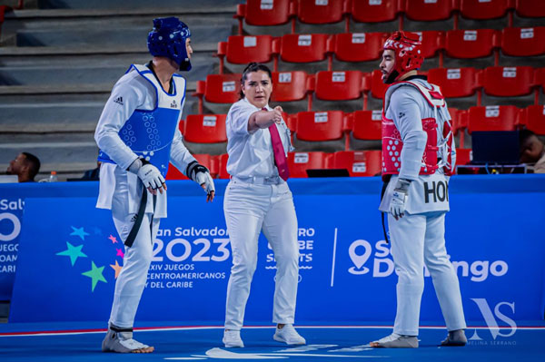 Hace unos días, la coach Sandra Guzmán viajó a Santo Domingo, República Dominicana, como parte de la delegación de jueces mexicanos que participarían en los Juegos Centroamericanos y del Caribe para la disciplina de taekwondo. Así, por cuatro días la entrenadora asistente de la Tribu Verde estuvo en el Centro Descarado Juan Pablo Duarte, interviniendo en las competencias de poomsae o formas y combate por equipos e individualmente.