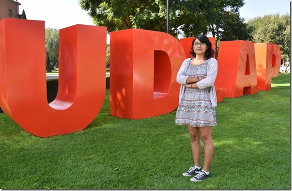 “La imagen fue tomada en este campus (UDLAP), porque hay un árbol donde se ve la viruta que cortaron. Invité a mi amiga a que posara, la vestí completamente de plomizo y le puse un cubre bocas porque no respiramos sin los árboles y, encima, sin ellos el medio ambiente se contamina mucho. Lo importante era que estuviera hacia lo alto de un árbol ya muerto, haciendo una señal de resistor”, explicó su concepto la egresada en 2014.