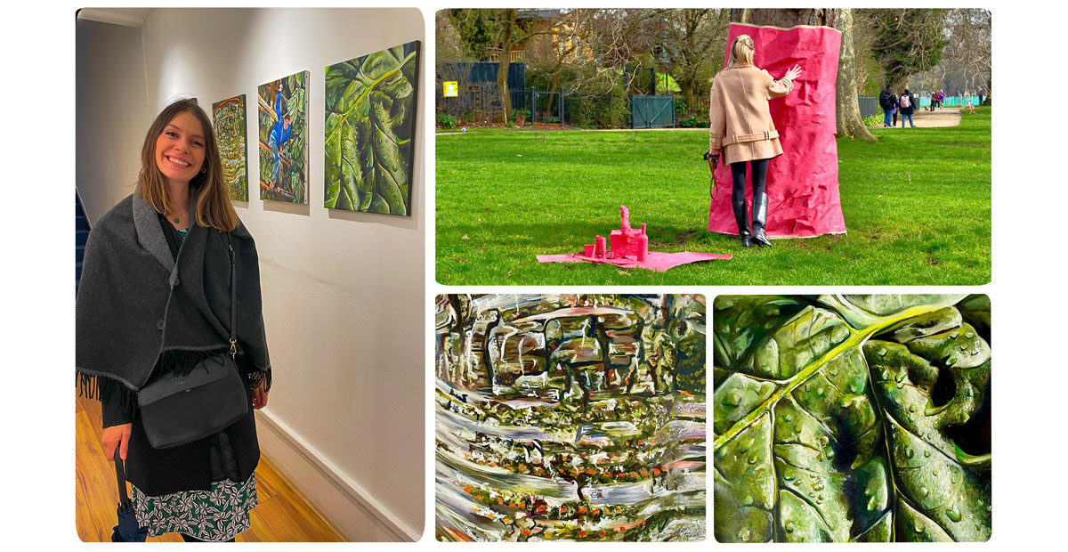 Particularmente, Paola participó en esta exposición con 3 pinturas al óleo, todas con el global de la nostalgia con destino a su tierra originario y su intento por conectar con la naturaleza. “Para la exposición fueron seleccionadas dos obras sobre los tabacales: una sobre las hojas y otra sobre el proceso de curación (secado de las hojas), estas obras son inspiradas en San Andrés Tuxtla, Veracruz, de donde soy. La tercera obra palabra más de la naturaleza de Hyde Park, esta obra contrapone este parque en medio de la ciudad y muestra cómo la naturaleza es tan diferente pero al mismo tiempo te transmite lo mismo”.