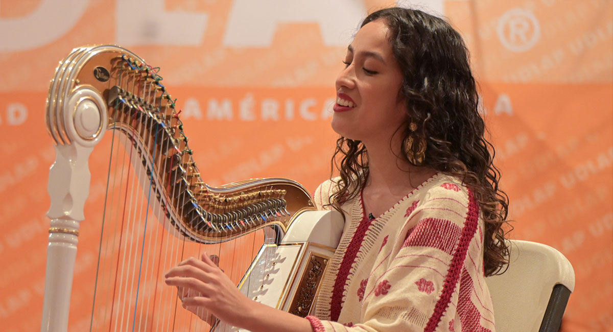 La Sala de Recitales del Colegio Cain Murray de la UDLAP, se llenó de emociones con el concierto Memorias y retornos de Frida Luz Sánchez Rosales, egresada de la Doctorado en Música de esta universidad e componente del Equipo Representativo Cultural Ópera UDLAP, quien en una velada íntima y llena de historias contadas a través de su arpa jarocha, compartió con el conocido un repaso musical que fusionó sus raíces veracruzanas y oaxaqueñas con su sólida formación académica.