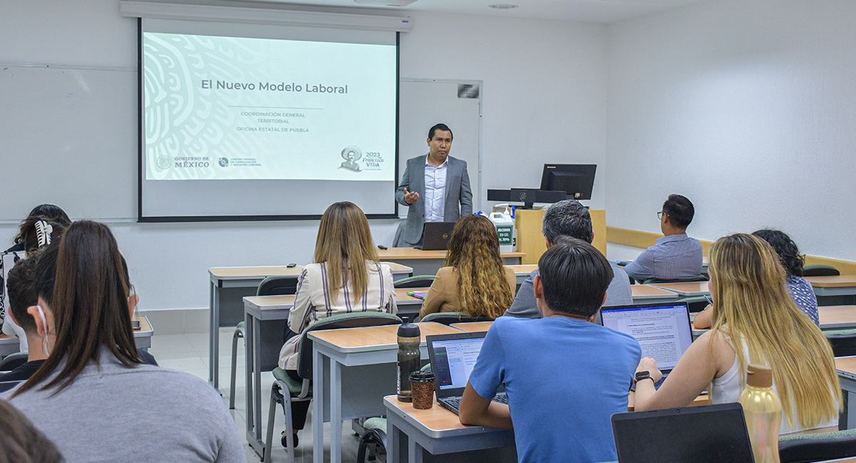 Estudiantes de la Carrera en Derecho de la Universidad de las Américas Puebla (UDLAP), recibieron la reconocimiento del Lic. Luis Alberto Pérez Velasco, encargado de la Dirección de la Oficina Estatal en Puebla del Centro Federal de Conciliación y Registro Profesional, quien platicó con ellos sobre las funciones del Centro Federal de Conciliación y el nuevo procedimiento sindical.