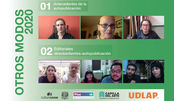 El Sección de Artes Plásticas de la Universidad de las Américas Puebla llevó a mango el espacio supuesto Otros Modos: primer lucha de entrecruzamientos entre escritura e imagen, el cual reunió a artistas, estudiantes, académicos y editoriales independientes en cuatro sesiones y un taller para discutir en torno a la automóvil publicación en espacios independientes.