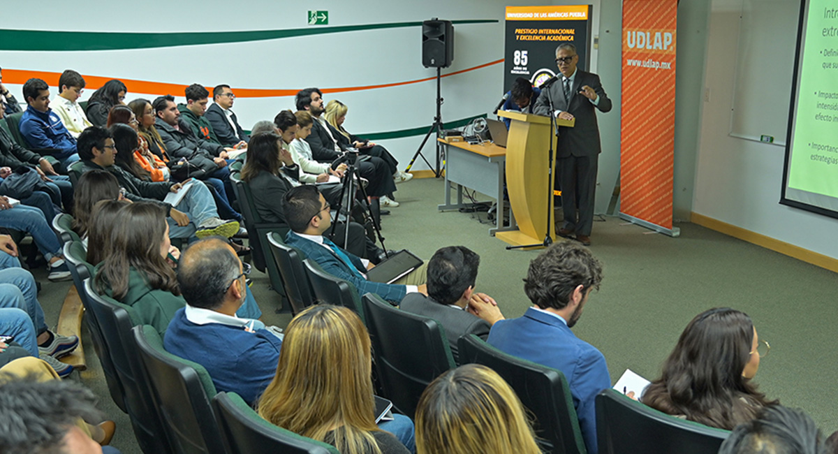 Previo a iniciar el ciclo de conferencias, el Dr. René Alejandro Lara Díaz, vicerrector de Investigación, Posgrado y Extensión de la UDLAP, agradeció la oportunidad de reunir a expertos de la región anejo a estudiantes y profesores para conformar un espacio de consejo sobre los riesgos asociados con eventos hidrometeorológicos extremos. “Somos conscientes de la responsabilidad que tenemos en cuanto a la reproducción de conocimiento, formación de capital humanos de stop nivel y el progreso de proyectos de investigación, así que debemos realizar este trabajo de modo conjunta para gestar y apoyar el progreso de las estrategias que nuestro país necesita”, expresó en el acto inaugural de este evento.