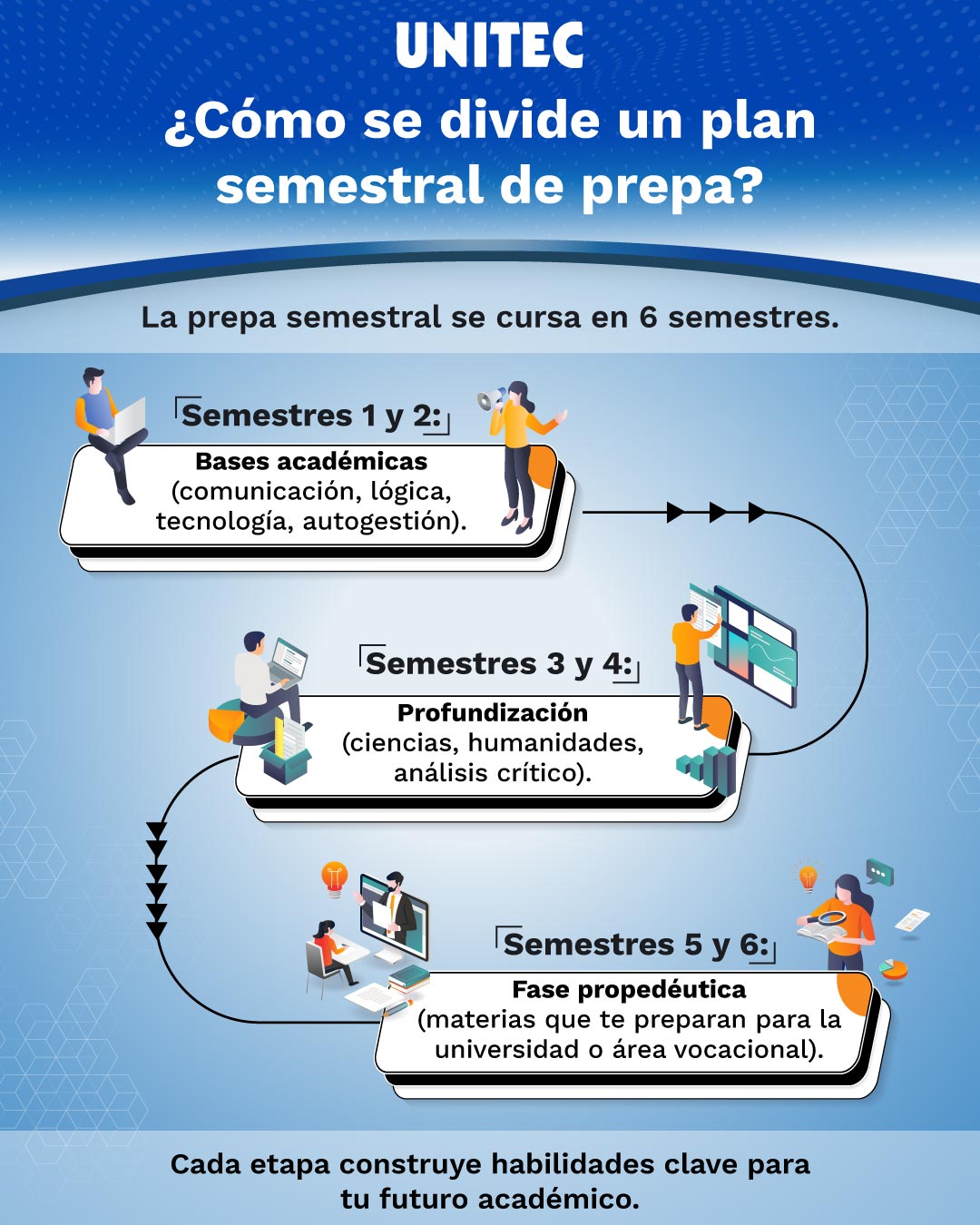 La preparatoria semestral es el maniquí tradicional en México y se organiza en 6 semestres, con una duración aproximada de 3 abriles. Cada semestre zapatilla de 5 a 6 meses de clases, lo que permite sufrir las materias de forma progresiva y con veterano tiempo para absorber los contenidos.
