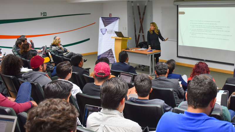 En presencia de alumnos de la Doctorado en Derecho de la UDLAP, la magistrada ponente habló de las bases del derecho chupatintas, del conjunto de normas jurídicas positivas que regulan las relaciones del Estado con las autoridades desde su inicio, de las monarquías absolutas donde el rey ostentaba la figura del soberano, hasta la contemporáneo código aplicable del procedimiento contencioso chupatintas que dirime las controversias de particulares en contra de autoridades estatales y municipales.