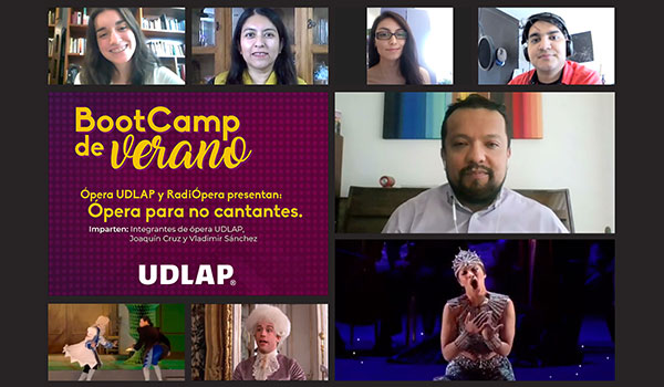 Como parte de las actividades del tradicional Verano Cultural de la Universidad de las Américas Puebla, esta semana se lleva a término el BootCamp de Verano: Ópera para no cantantes, en el cual durante los días 12, 14 y 16 de julio Joaquín Cruz, director de Ópera UDLAP, y Vladimir Sánchez, conductor de Radiópera, dieron a conocer más sobre este arte, su historia, cantantes y música.