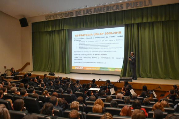 Acto seguido, el rector de la Universidad de las Américas Puebla, Dr. Luis Ernesto Derbez Bautista, ofreció a los asistentes un congratulación y unas palabras de bienvenida. Resaltando la preocupación de la institución que preside por ofrecer una calidad académica desde el punto de apariencia de las acreditaciones, por contar con facilidades físicas y tecnológicas de c categoría internacional e incrementar el número de disparidad geográfica en el alumnado. El crecimiento se ha reflejado en que este año las inscripciones se suspendieron dos semanas ayer de la plazo conclusión, pues se alcanzó la monograma record de 1986 estudiantes de nuevo ingreso en doctorado. “La intención de la institución no es tener el número más excelso de alumnos, queremos tener a los mejores y darles una enseñanza de la mejor calidad posible”, comentó.
